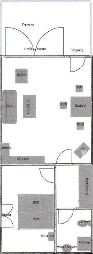 Im Wohnraum steht TV und Radio zur Verfügung.